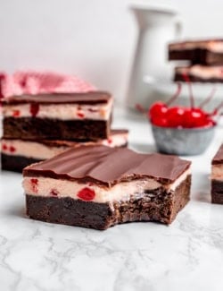 This Cherry Brownies recipe features layers of fudgy brownie, creamy maraschino cherry buttercream, and rich chocolate glaze. Inspired by the cherry cordials dessert, these decadent brownies promise to be one of the sweetest treats to ever grace your kitchen!