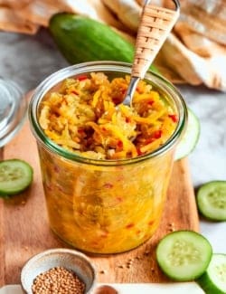 A really spectacular Pickle Relish is one of my favorite embellishments during grilling season, and all throughout the year for that matter. Spread it over hot dogs and brats, dollop it onto burgers, and surprise most any other grilled protein with its gloriously fresh and tangy flavor. This quick pickles recipe fits right in with all my other refrigerator pickles recipes – have you tried my Dill Pickles, spicy Pickled Jalapenos, or this tender Pickled Squashe yet?!